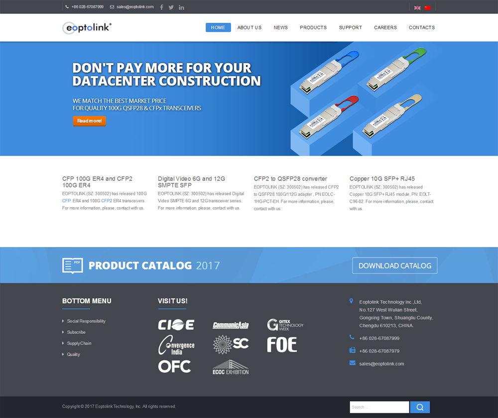 网站:http://www.eoptolink.com/ Eoptolink Technology Inc., Ltd., founded in April 2008 and certified as high-tech enterprise in 2010, is the solu